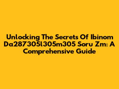 Unlocking The Secrets Of Ibinom Da287305l305m305 Soru Zm: A Comprehensive Guide