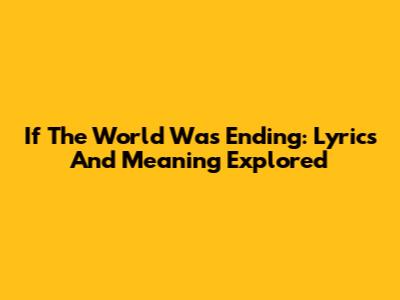 If The World Was Ending: Lyrics And Meaning Explored