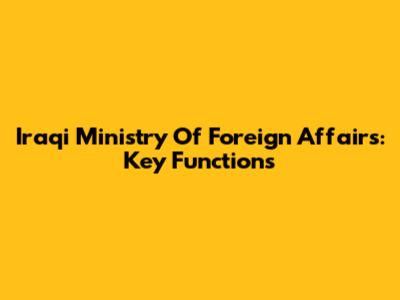 Iraqi Ministry Of Foreign Affairs: Key Functions