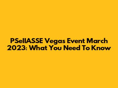 PSeIIASSE Vegas Event March 2023: What You Need To Know