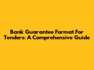 Bank Guarantee Format For Tenders: A Comprehensive Guide