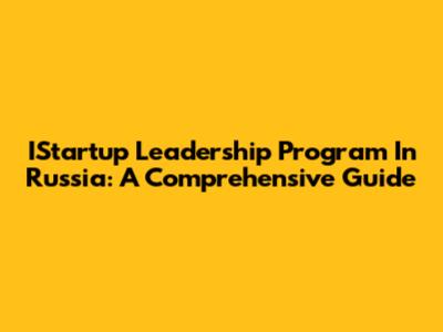 IStartup Leadership Program In Russia: A Comprehensive Guide