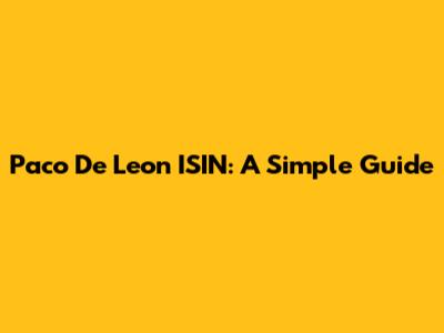 Paco De Leon ISIN: A Simple Guide