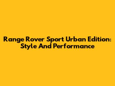 Range Rover Sport Urban Edition: Style And Performance