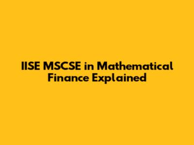 Hey guys! Ever heard of IISE MSCSE in Mathematical Finance? If you're looking to dive deep into the world of finance with a serious quantitative edge, then this is totally something you should be checking out. We're talking about a Master of Science in Computer Science (MSCSE) program, but with a specialized focus on Mathematical Finance. This means you're not just getting a standard computer science degree; you're getting one packed with the mathematical tools and computational skills needed to tackle complex financial problems. Think risk management, algorithmic trading, derivative pricing, and portfolio optimization – the really juicy stuff that makes the financial world tick.