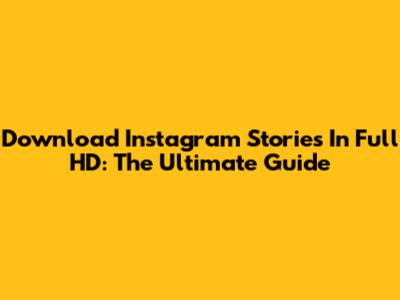 Download Instagram Stories In Full HD: The Ultimate Guide