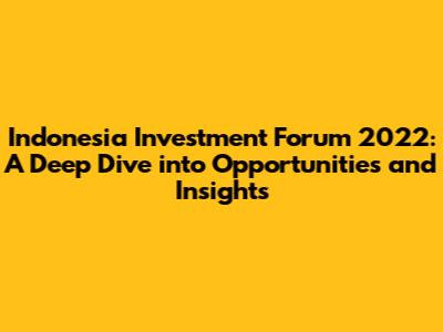 Hey everyone, let's talk about the Indonesia Investment Forum 2022! This event was a major hub for investors, policymakers, and business leaders to connect and discuss the exciting investment prospects within Indonesia. We'll break down the key takeaways, explore the hottest investment sectors, and examine the government's initiatives driving economic growth. This is your guide to understanding the Indonesia Investment Forum 2022 and what it means for your investment strategies. It's a comprehensive overview of the event, offering valuable insights into the Indonesian market and future investment prospects.