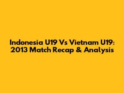 Indonesia U19 Vs Vietnam U19: 2013 Match Recap & Analysis
