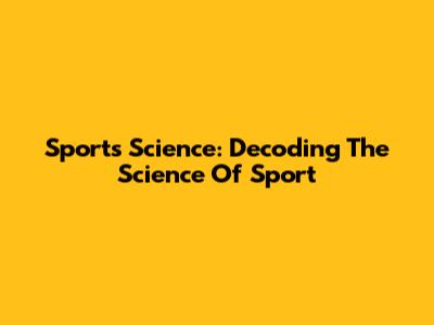 Sports Science: Decoding The Science Of Sport
