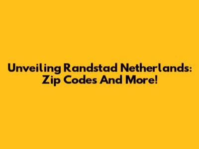 Unveiling Randstad Netherlands: Zip Codes And More!