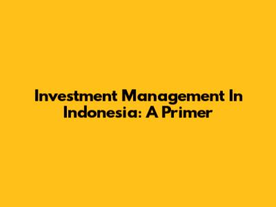 Investment Management In Indonesia: A Primer
