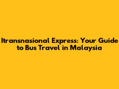 Hey guys! Planning a trip around Malaysia and looking for a reliable bus service? Let's dive into Itransnasional Express, one of Malaysia's most established and well-known bus operators. This guide will give you the lowdown on everything you need to know, from routes and ticket booking to what to expect on board.