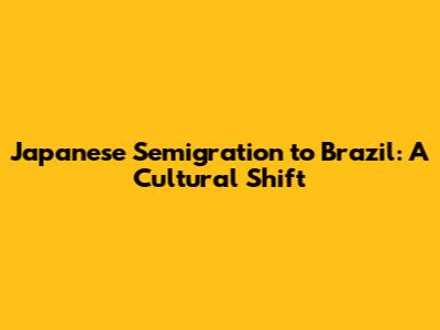 Current Trends in Japanese Semigration to Brazil