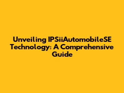 Unveiling IPSiiAutomobileSE Technology: A Comprehensive Guide