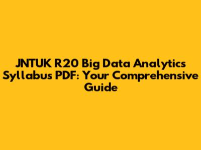 Hey guys! Are you diving into the world of Big Data Analytics under the JNTUK R20 regulations? If so, you're probably on the hunt for a reliable syllabus PDF. Well, you've landed in the right spot! This guide will walk you through everything you need to know about the Big Data Analytics syllabus for JNTUK R20, ensuring you're well-prepared for your academic journey. Let’s get started!