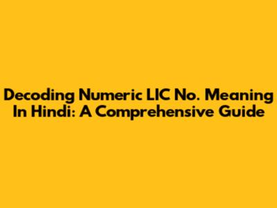Decoding Numeric LIC No. Meaning In Hindi: A Comprehensive Guide