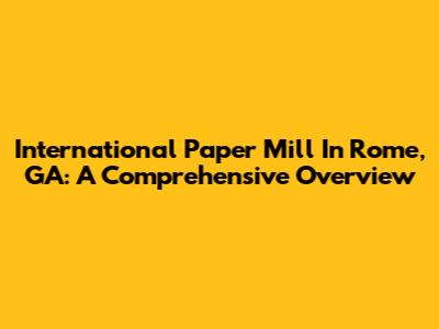 International Paper Mill In Rome, GA: A Comprehensive Overview