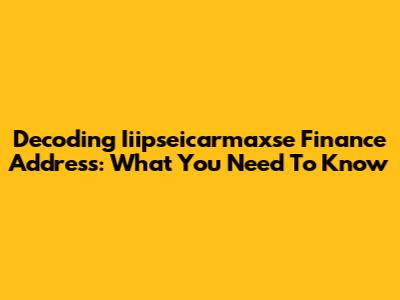 Decoding Iiipseicarmaxse Finance Address: What You Need To Know