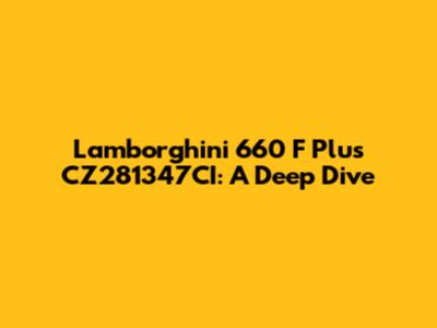 Let's break down what makes the Lamborghini 660 F Plus so special. This section is all about understanding the key elements that define this beast of a machine. We'll explore everything from its raw power to its sophisticated design elements, giving you a comprehensive overview of what you can expect from this incredible vehicle. Plus, we'll try to demystify that intriguing "CZ281347CI" identifier. We're going to cover the engine, the design, and the tech that makes this car more than just a pretty face. Performance is at the heart of the Lamborghini 660 F Plus, and its engine is the main attraction. Depending on the exact configuration, you can expect either a naturally aspirated V10 or a V12 engine, both of which are engineered to deliver breathtaking power and performance. These engines are not just about raw horsepower; they're also about responsiveness, refinement, and a soundtrack that sends shivers down your spine. Features like direct fuel injection, variable valve timing, and lightweight components contribute to the engine's overall efficiency and performance. Whether you're accelerating from a standstill or cruising at high speeds, the Lamborghini 660 F Plus delivers an unmatched level of excitement and engagement. Beyond its impressive engine, the Lamborghini 660 F Plus boasts a striking design that is both functional and visually stunning. Its aerodynamic silhouette, aggressive lines, and signature Lamborghini styling cues make it instantly recognizable. Every element of the exterior, from the front splitter to the rear diffuser, is designed to optimize airflow and improve downforce. Lightweight materials such as carbon fiber are used extensively to reduce weight and enhance performance. Inside, the cockpit is a blend of luxury and technology, featuring premium materials, advanced infotainment systems, and driver-focused controls. The seats are designed to provide both comfort and support, ensuring that the driver remains firmly in control during high-speed maneuvers. This attention to detail extends to every aspect of the car, creating a cohesive and immersive driving experience. But what about the tech? The Lamborghini 660 F Plus is packed with advanced technologies that enhance both performance and safety. Features like adaptive suspension, electronic stability control, and all-wheel drive work in harmony to optimize handling, traction, and overall driving dynamics. The infotainment system offers seamless connectivity, navigation, and entertainment options, while the driver-assistance features provide added peace of mind. These technologies are seamlessly integrated into the driving experience, allowing the driver to focus on what matters most: the thrill of the open road. Stay tuned for more detailed insights into each of these aspects!