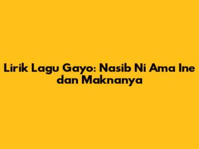 Lagu Gayo berjudul "Nasib Ni Ama Ine" adalah sebuah karya seni yang mendalam, mencerminkan realitas kehidupan dan nilai-nilai budaya masyarakat Gayo. Dalam artikel ini, kita akan membahas lirik lagu ini secara mendalam, menggali makna yang terkandung di dalamnya, dan memahami mengapa lagu ini begitu penting bagi masyarakat Gayo. Mari kita selami bersama kekayaan budaya yang tersembunyi dalam setiap baitnya.
