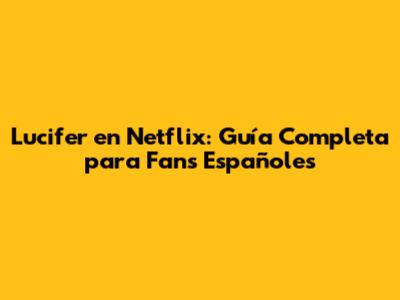 Dónde Ver Lucifer en Netflix España y Cómo Encontrar el Tráiler