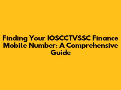 Finding Your IOSCCTVSSC Finance Mobile Number: A Comprehensive Guide