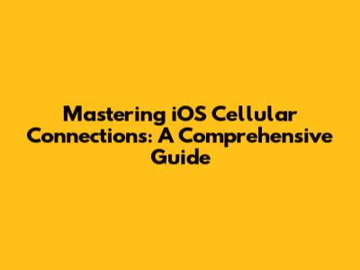 Mastering IOS Cellular Connections: A Comprehensive Guide