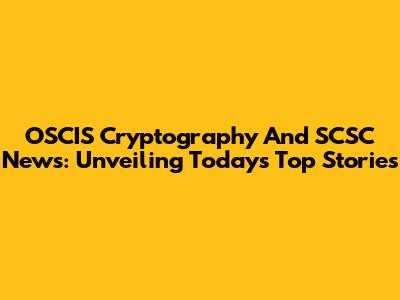 OSCIS Cryptography And SCSC News: Unveiling Today's Top Stories