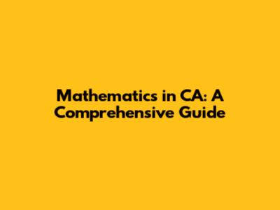 Mathematics In CA: A Comprehensive Guide