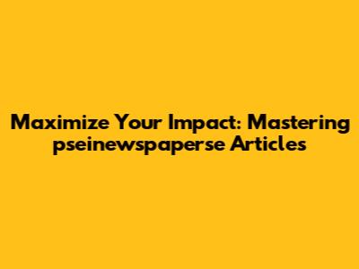 Maximize Your Impact: Mastering Pseinewspaperse Articles