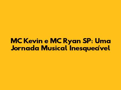 Quer saber como tudo começou? Como eles se conheceram e formaram essa dupla imbatível? Quais foram os maiores hits? E como a perda do MC Kevin abalou o mundo do funk? A gente te conta tudo isso e muito mais! Prepare-se para mergulhar no universo de MC Kevin e MC Ryan SP, uma dupla que deixou uma marca indelével na história da música brasileira.