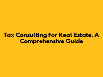 Tax Consulting For Real Estate: A Comprehensive Guide