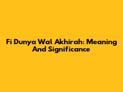 Fi Dunya Wal Akhirah: Meaning And Significance