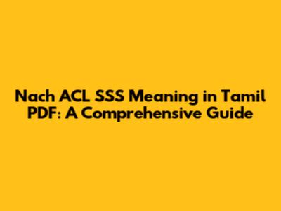 Understanding technical terms can be challenging, especially when they're presented in a different language or context. When dealing with concepts like Nach ACL SSS and looking for their meaning in Tamil within a PDF document, it's essential to break down each component. Let's dive into what these terms might signify and how you can find relevant information in Tamil.