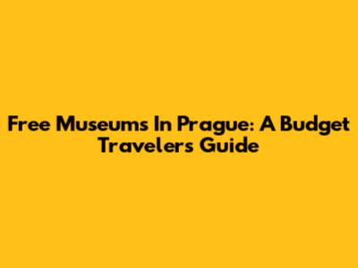 Free Museums In Prague: A Budget Traveler's Guide
