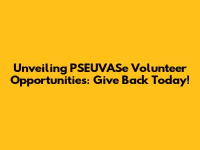 Unveiling PSEUVASe Volunteer Opportunities: Give Back Today!