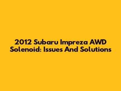 2012 Subaru Impreza AWD Solenoid: Issues And Solutions