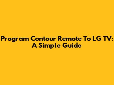 Program Contour Remote To LG TV: A Simple Guide