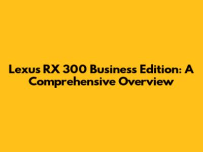 Lexus RX 300 Business Edition: A Comprehensive Overview