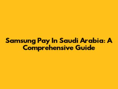 Samsung Pay In Saudi Arabia: A Comprehensive Guide
