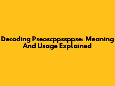 Decoding Pseoscppssppse: Meaning And Usage Explained