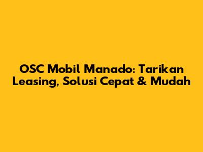 OSC Mobil Manado: Tarikan Leasing, Solusi Cepat & Mudah