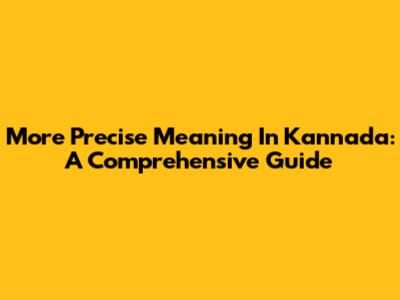 More Precise Meaning In Kannada: A Comprehensive Guide