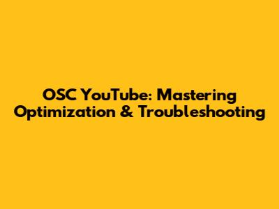 OSC YouTube: Mastering Optimization & Troubleshooting