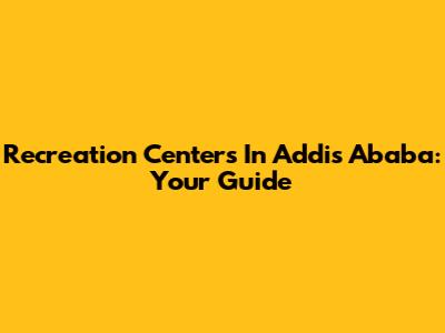 Recreation Centers In Addis Ababa: Your Guide