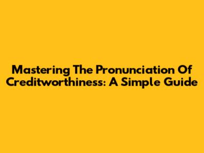 Mastering The Pronunciation Of Creditworthiness: A Simple Guide