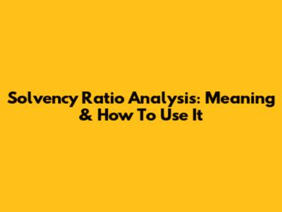 Solvency Ratio Analysis: Meaning & How To Use It