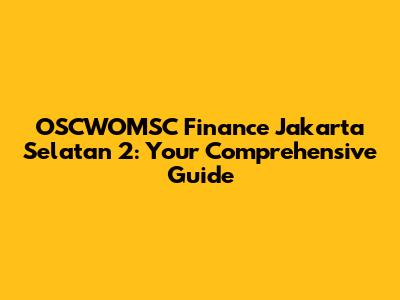 Hey guys! Looking for reliable OSCWOMSC Finance info in Jakarta Selatan 2? You've landed in the right place. This guide will walk you through everything you need to know, ensuring you're well-informed and ready to make smart financial decisions. We'll cover what OSCWOMSC Finance is all about in this specific area, why it matters, and how you can leverage it to your advantage. So, buckle up and let's dive in!