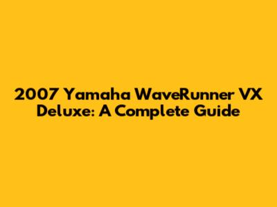 2007 Yamaha WaveRunner VX Deluxe: A Complete Guide