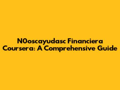 N0oscayudasc Financiera Coursera: A Comprehensive Guide